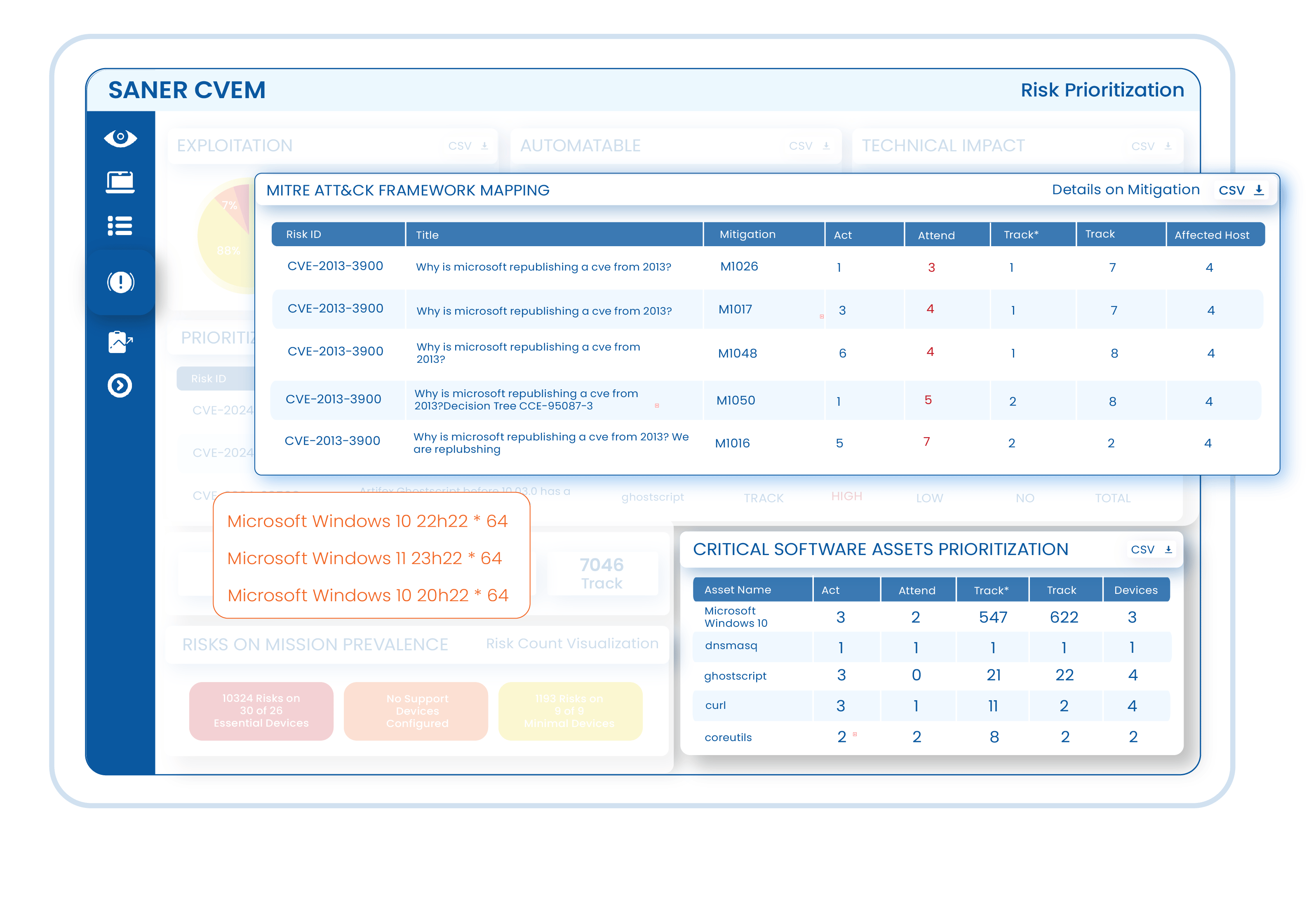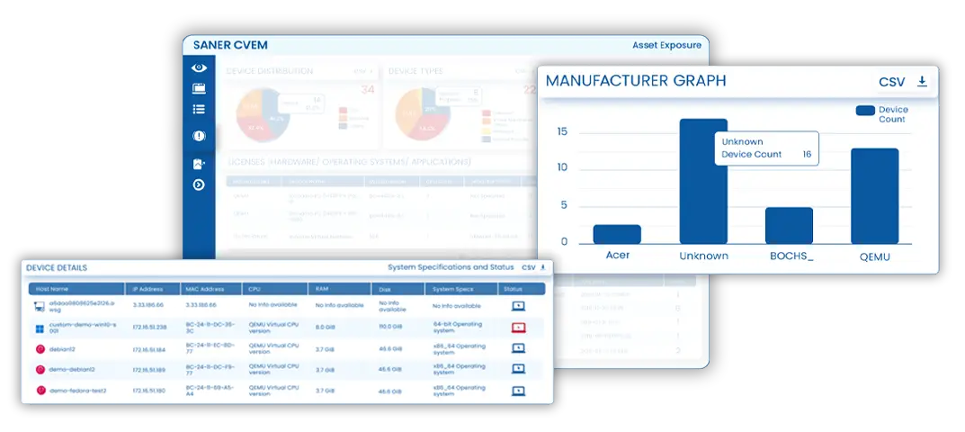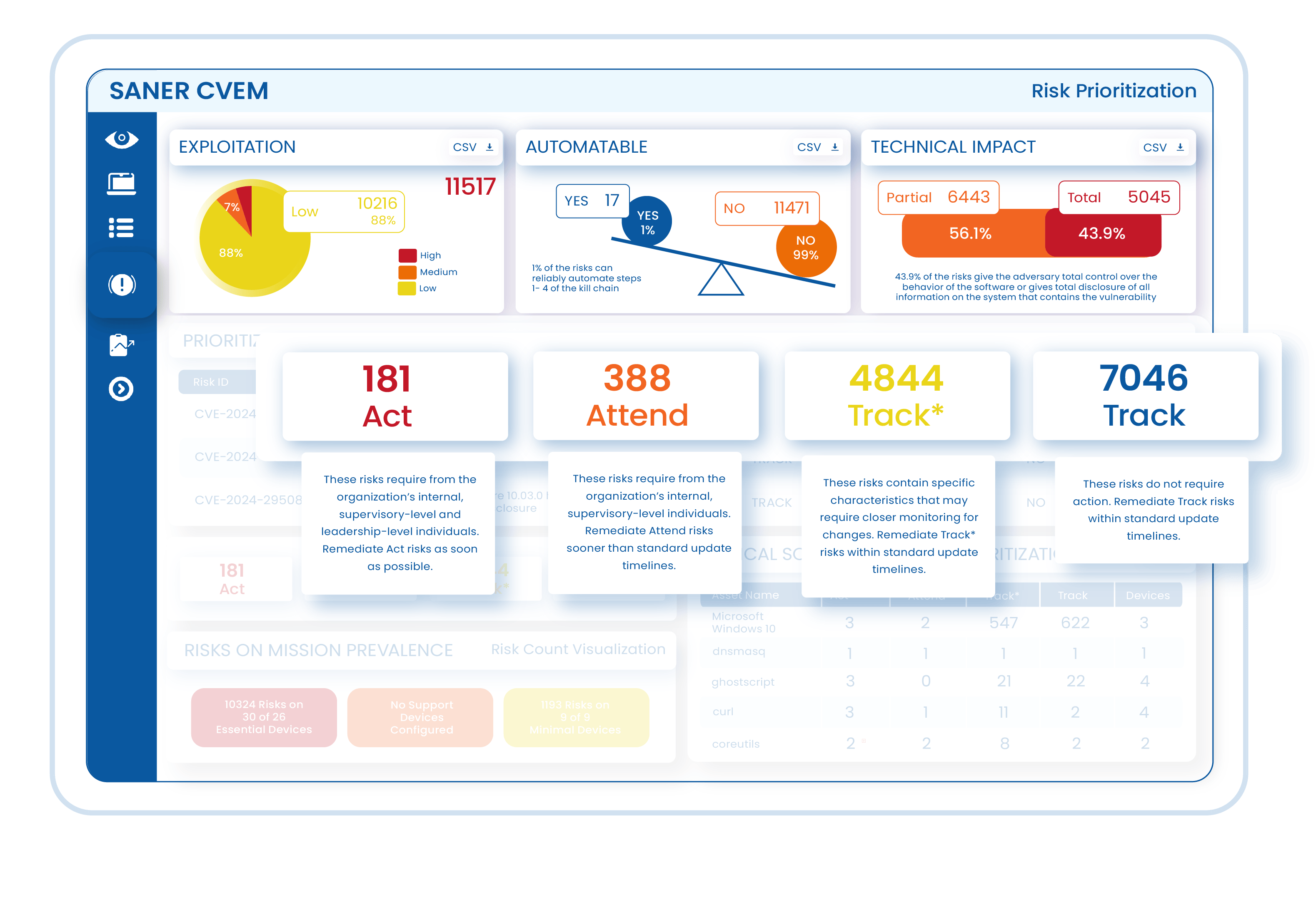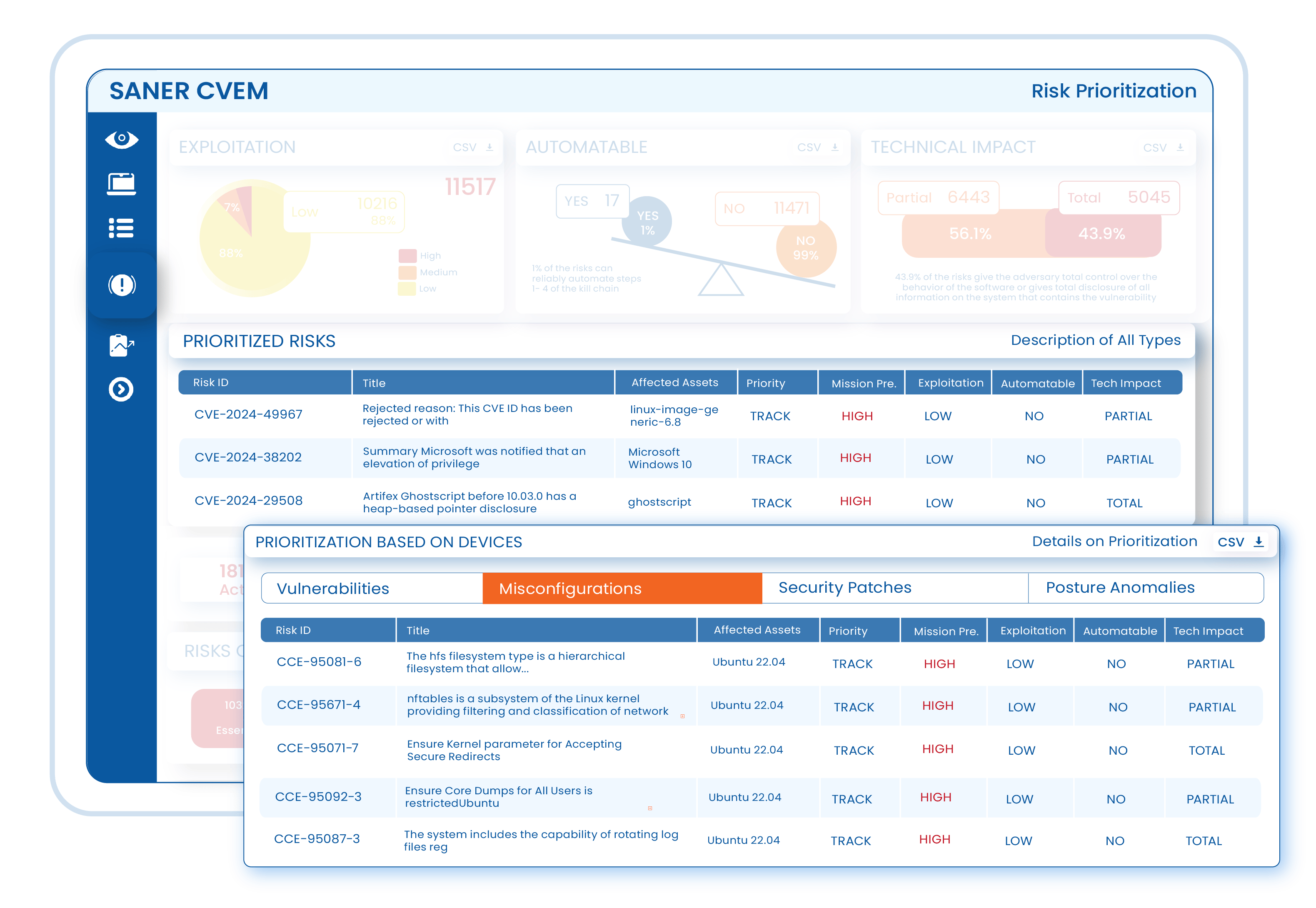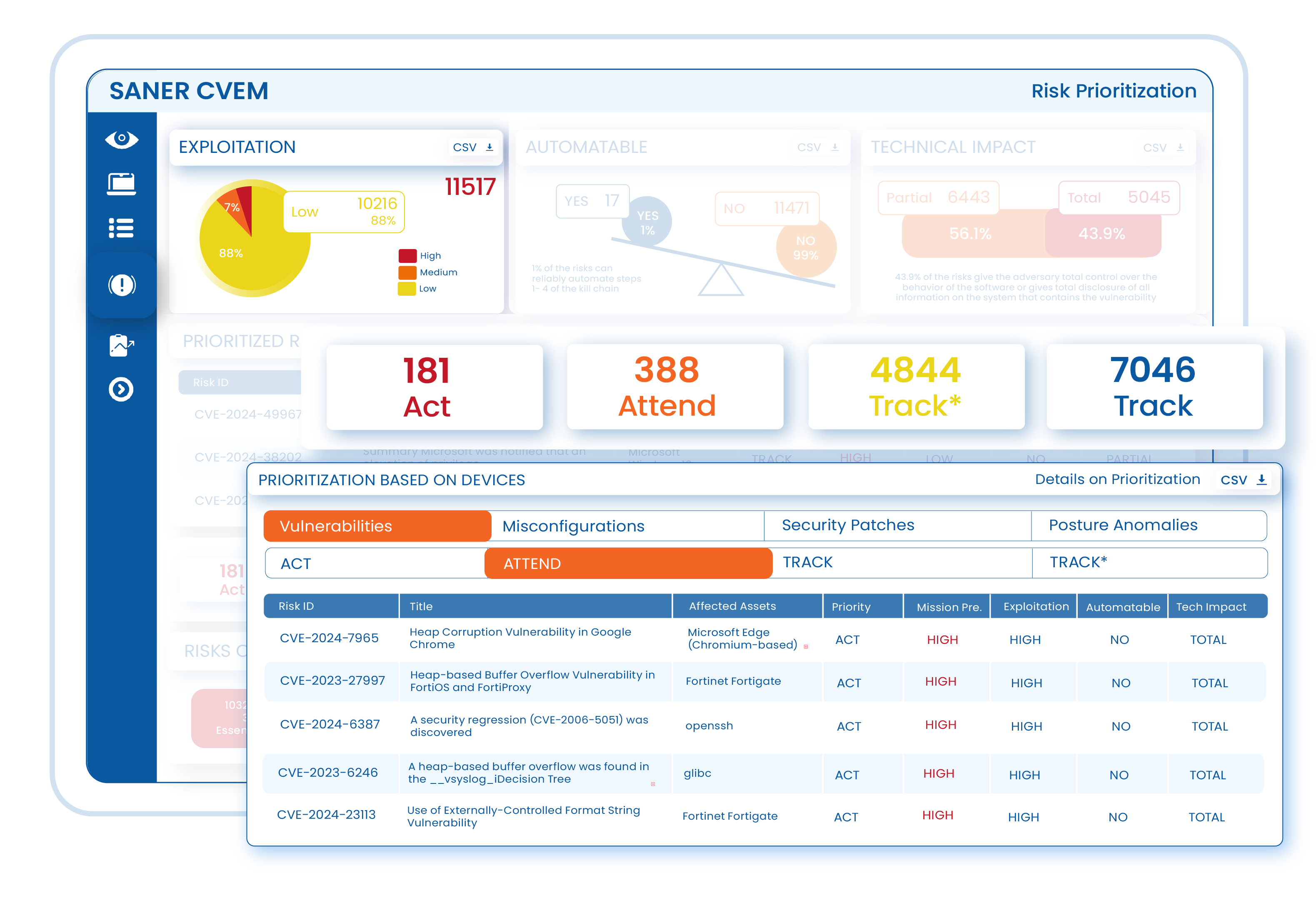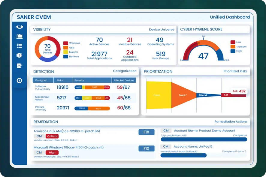 With millions of vulnerabilities threatening your IT environment, Saner CVEM identifies the most critical risks that expose your organization. By prioritizing high-impact vulnerabilities, it enables rapid attack surface reduction essential for preventing cyber threats and ensuring swift, effective remediation.